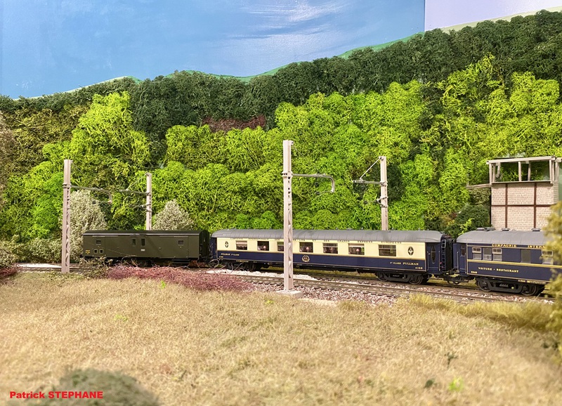 En fait, je me suis basé sur un cliché (assez rare à ma connaissance) paru dans "Le Train Nostalgie" (numéro 25). L'on y voit le Mistral au sud de Lyon en septembre 1958, tracté par une BB 9200 flambant neuve et non encore munie des crochets destinés à recevoir la fameuse plaque frontale. Même si la légende ne le mentionne pas, la composition interpelle puisque ce n'est pas encore celle que l'on verra pendant presque une dizaine d'années derrière les BB 9200 (avec la tranche "Nice" et le fourgon-générateur en tête cette fois au départ de Paris).